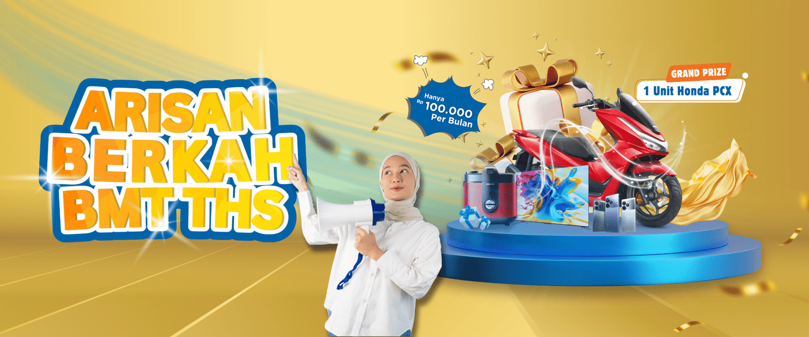 Dengan iuran hanya Rp100.000 per bulan, Anda bisa menikmati manfaat simpanan berjangka sekaligus berkesempatan membawa pulang 1 Unit Honda PCX dan berbagai hadiah menarik lainnya.